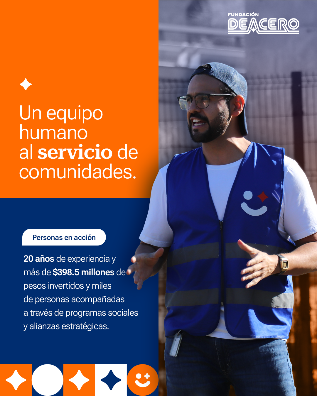 Desarrollamos activamente una estrategia de comunicación integral para Fundación DEACERO que va más allá de difundir un mensaje central, y se enfoca en construir un sistema narrativo completo alrededor del concepto Comunidades tan fuertes como el acero. Este sistema no solo comunica fortaleza, sino todo lo que la sostiene: el acompañamiento humano, la acción colectiva, la cercanía con las comunidades y una visión de largo plazo orientada a la transformación social real.